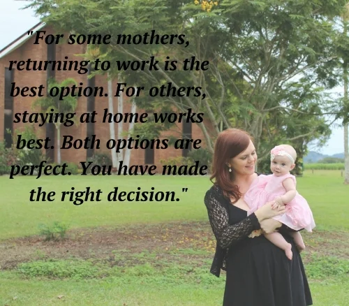 For some mothers, returning to work is the best option. For others, staying at home works best. Both options are perfect. You have made the right decision.